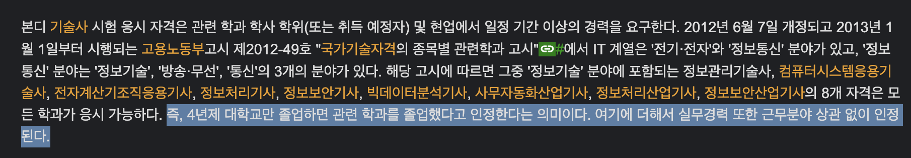 그런데 이런 제가 실제로는 정보관리기술사 자격증을 딸 수 있는 응시자격이 무려 몇 년전에 됐더라고요. 신기하지 않나요?