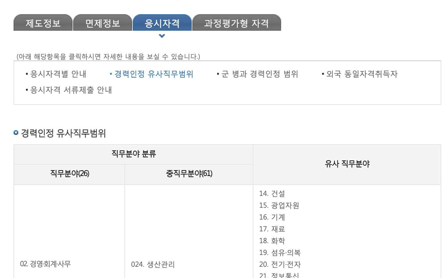 경력인정 유사직무범위 - 국가기술 자격제도 | Q-net